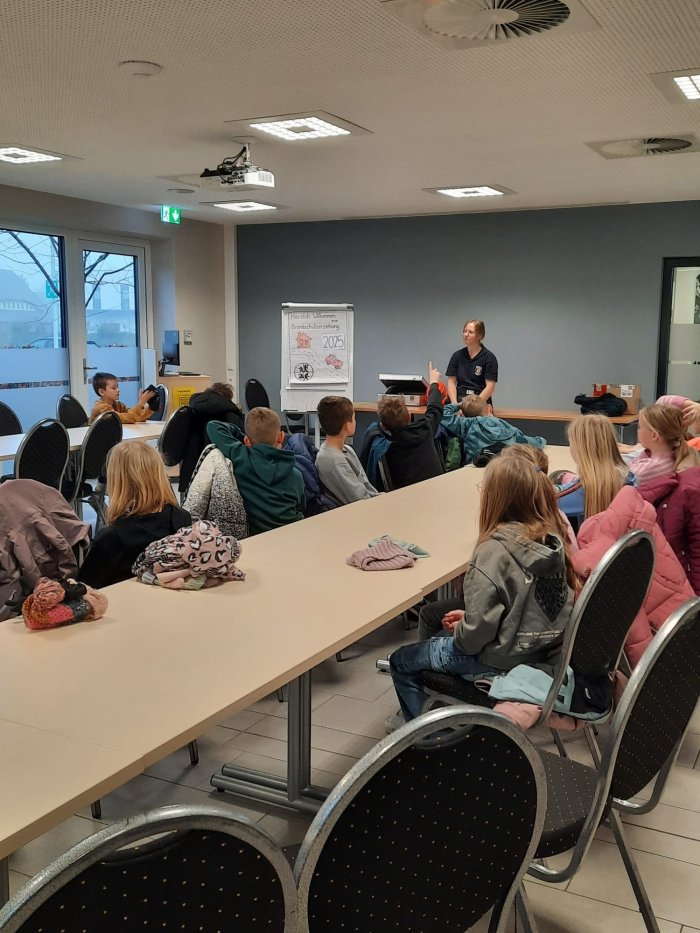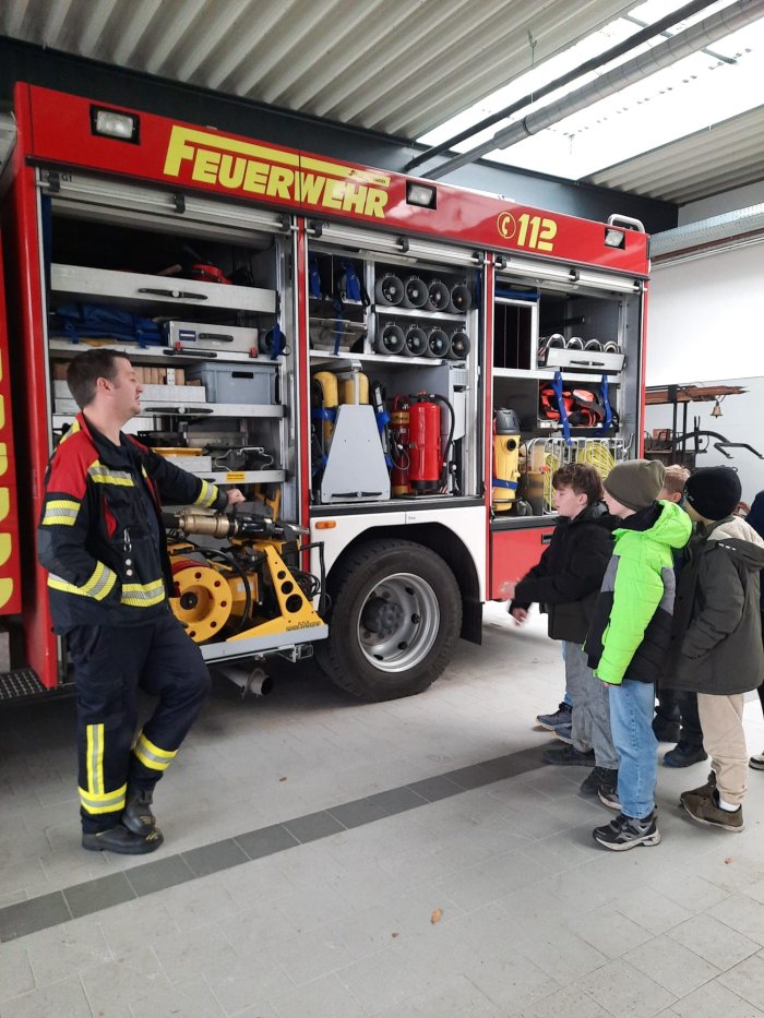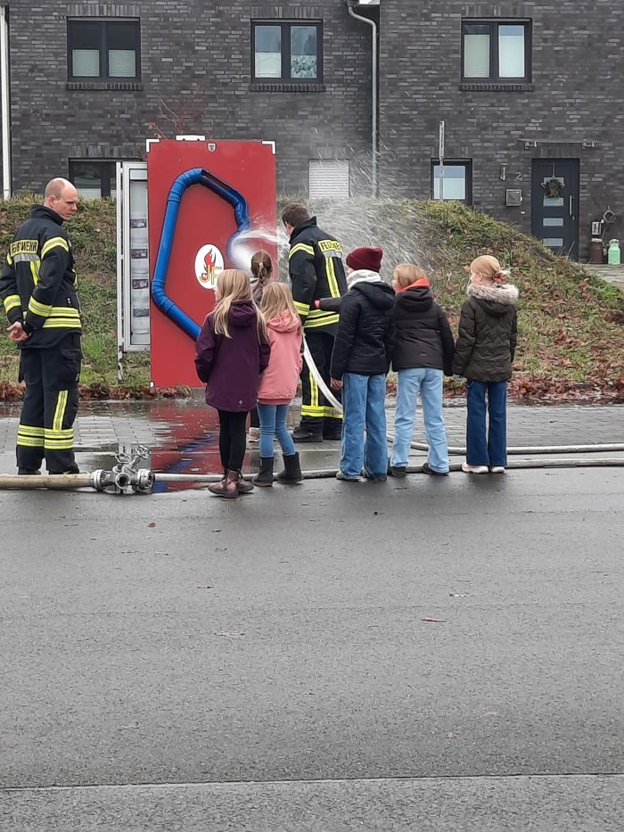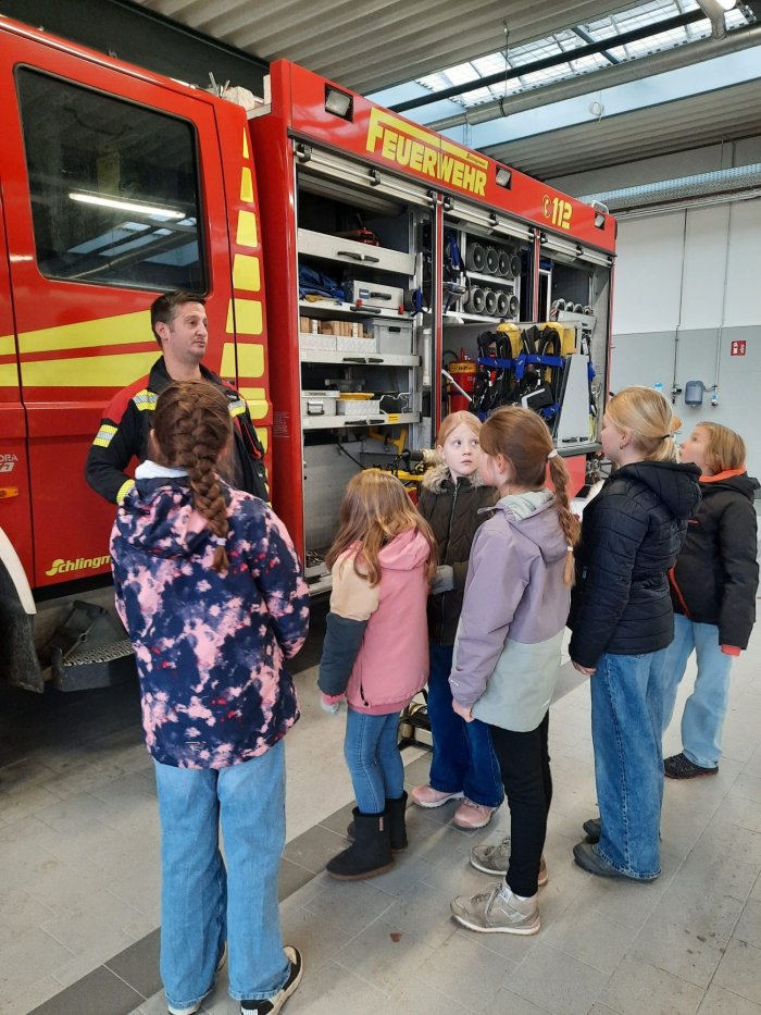 Ende November beuchten unsere vierten Klassen im Rahmen der Unterrichtseinheit „Feuer und Feuerwehr“ besuchten die vierten Klassen die Freiwillige Feuerwehr Emsbüren. Zunächst wurden die vielfältigen Aufgaben der Feuerwehr besprochen. Zudem lernten sie die verschiedenen Brandklassen mit den entsprechenden Löschmitteln kennen.