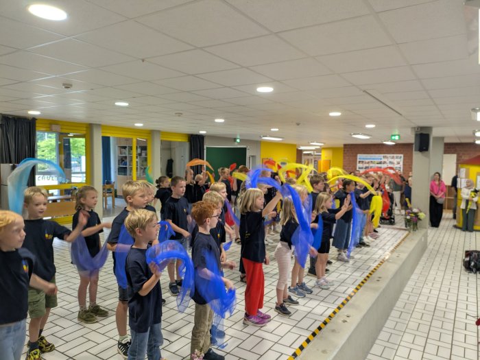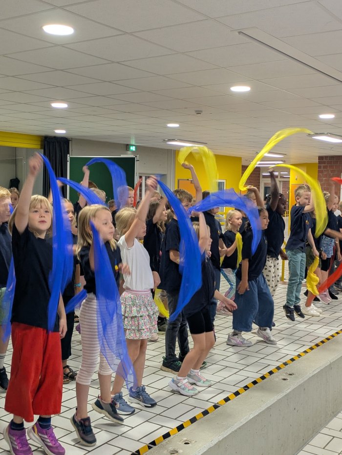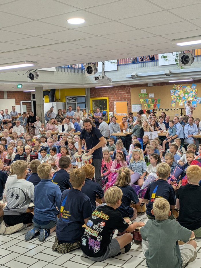 Für musikalische und tänzerische Unterhaltung sorgten die Bongogruppe, die ein mitreißendes Stück aufführte, sowie die Zweitklässlerinnen und Zweitklässler, die mit einem bunten Tanz begeisterten.