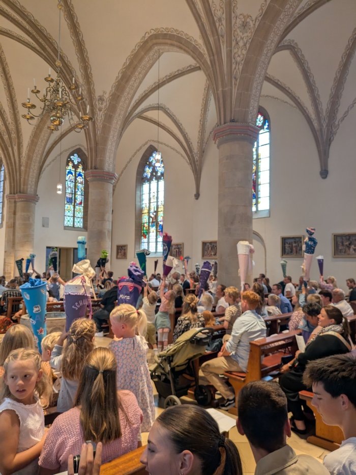 Mit einem festlichen Wortgottesdienst in der St.-Andreas-Kirche begann am 16.08.2025 die Einschulungsfeier unserer neuen Erstklässlerinnen und Erstklässler. Anschließend wurden die Kinder und ihre Familien in der Schule herzlich von Schulleiter Andreas Lüken begrüßt.