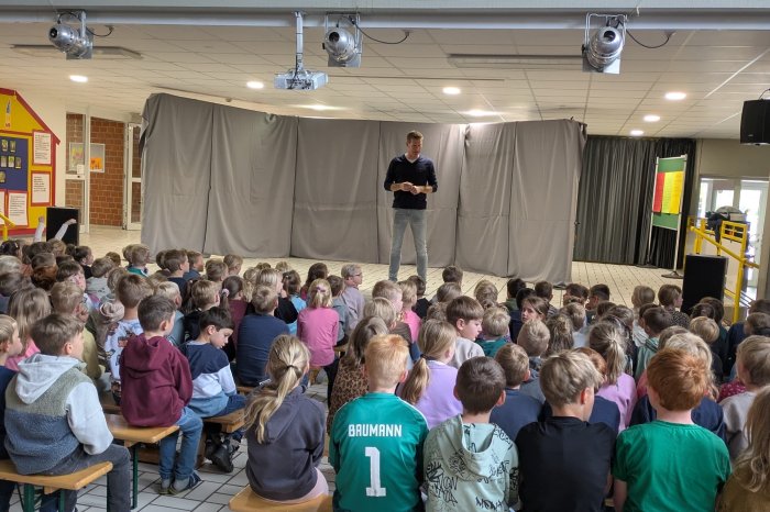 Bühne frei für das Theaterensemble Emsbüren! Wir durften in der Aula das Theaterensemble Emsbüren begrüßen, welches uns auch schon in den letzten Jahren Stücke vom "Neinhorn" bis zu "Pinocchio" gezeigt hat.